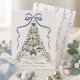 Send warm holiday greetings with this personalised Grandmillennial Christmas card featuring an elegant watercolor Christmas tree adorned with blue and silver ornaments, delicate stars, and festive ribbon accents. The design showcases a classic winter palette of soft ivory, navy, and frosty blue tones, topped with a hand-painted bow for a timeless, romantic touch. The bottom banner includes customisable text, perfect for adding your names, wedding year, or special holiday message, making it an ideal choice for newlywed Christmas cards, family holiday cards, or personalised seasonal greetings. This luxury Christmas card design blends modern minimalism with traditional holiday charm, creating a keepsake your loved ones will treasure.