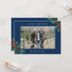 Merry Christmas Blue Custom Classic Holly Berries. A simple and elegant design featuring vintage holly and Christmas berries and a photo with messages you can customise. At the back of the card is a personalised message you can customise.