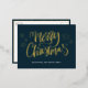 Merry Christmas Blue Gold Calligraphy Non Photo Foil Holiday Postcard