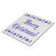 Merry Christmas Decor Blue Snowman Snowflakes Pattern Elegant Ceramic Tile Trivet with custom text
