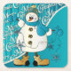 Merry Christmas Blue Snowman Square Paper Coaster