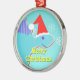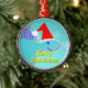 Merry Christmas Blue Stegosaurus Dino Ornament. An adorable little blue Christmas cartoon Stegosaurus dinosaur with red Santa hat and snow flakes falling from the sky ornament with customisable text "Merry Christmas" on it. This item is fully customisable, add your text(s) and images! A great dinosaur Christmas ornament for the big little dinosaur fan!