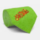 This men's necktie is a vibrant green with the text Merry Christmas at the bottom in bold bright red letters with gold stars.