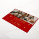 Celebrate Christmas with this stylish holiday card with delicate and shining foil Merry Christmas script calligraphy, customisable an a happy new year message, your family names and random details. Let this Christmas card showcase 2 of your favourite family photos on the front. The back features one more of your family photos, a gold star pattern red frame. Feel free to change this background colour to colour coordinate your photos.