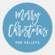 Merry Christmas Brush Script Blue Personalised Classic Round Sticker