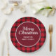 Merry Christmas Buffalo Plaid Red Black Chequered Paper Plate