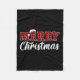 Merry Christmas Buffalo Plaid Red Santa Family Mat Fleece Blanket