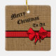 Merry Christmas Burlap Red Trim Personalised Ceramic Ornament