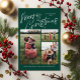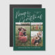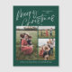 Green Merry Christmas Calligraphy Photo Magnetic Card features modern calligrapy script on the front, along with three photos, and a festive Christmas plaid on the back.