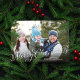 This design features a merry Christmas calligraphy script photo holiday card with a simple cute whimsical fun holiday, family full bleed picture template, whimsical cute candy cane striped, whimsy red and white stripes, simple minimalist minimal classic, creative traditional merry Christmas, fancy classy gradient calligraphy, timeless red and white stripe, Christmas holiday photo cards