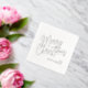 REAL FOIL! Your family name and Merry Christmas are silver foil-stamped on these elegant white holiday cocktail party napkins. Choose gold, silver or rose gold foil.