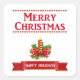 Christmas candle with Merry Christmas in red written above candle and red banner with transparent Happy Holidays below.