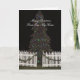 Pretty night lit Christmas tree with a white picket fence surrounding it. Perfect card for someone to send with a new home.