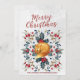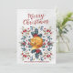 merry christmas card winter holly berries fox