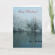 Merry Christmas card with snow, pond, and ducks
