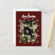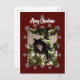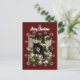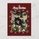 Christmas card with my Tuxie cat on the tree. Burgundy background. Merry Christmas.