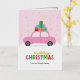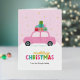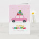 Merry Christmas Cars with Gifts in Pastel Pink Foil Holiday Card