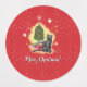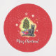 This is cute Christmas design with a vibrant red background full of stars and tiny snowflakes and with a beautiful cat in front of a Christmas tree. Send your loving, cosy, celebrating vibes to your loved ones!