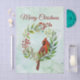 Great Christmas image that is simple classic and great for your business, family or co-workers and friends. Watercolor Cardinal Bird on a Holly Wreath
