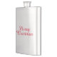 The product is a good size and came exactly as it was pictured. The lid is not attached to the flask, which could be dangerous on drunken nights... The print came out surprisingly well and looks very sharp. Would definitely recommend.