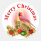 Say Merry Christmas with this beautiful Cardinal sitting on some golden tree branches and some colourful ornaments in front of a flame.