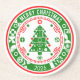 Modern Bauhaus-style Christmas design featuring a bold geometric tree in festive red and green.