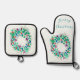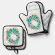 Merry Christmas Colourful Wreath Oven Mitt & Pot Holder Set