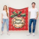 Merry Christmas Cookie with Holly Berries Red Fleece Blanket