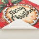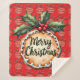 Merry Christmas Cookie with Holly Berries Red Sherpa Blanket