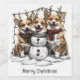 Merry Christmas Corgi Dogs Snowman Wine Label