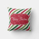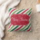 Merry Christmas illustration with text and snowflakes design on red, white and green striped background