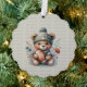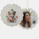 Custom ornament is a great holiday option. A great way to decorate your home for Christmas and also be used as a gift tag or Christmas card. Modern design with flowers and a cute bear holding a football. Ecru background. The ornament has a Merry Christmas greeting. You can customise the text. Add your favourite photo to one side. Use the template to create your own custom ornament.