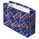 Get ready for Christmas with a custom name gift bag! This bold design features sports jersey inspired typography, with a retro block font, a trendy script, and a star motif. Personalise the template with the recipient's name and a holiday greeting, or adapt it for any special occasion. This festive gift bag is suitable for all ages, from kids and teens to family and friends! Available with a matte or glossy finish. Printed colours: dark blue, navy, red and white.