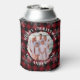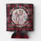 Merry Christmas Custom Photo Black Red Plaid Can Cooler