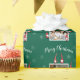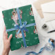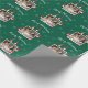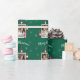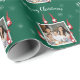 Funny and festive Merry Christmas wrapping paper with personalised photo and cute gnomes on green background