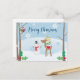 This Xmas, anyone would love to receive this cute Merry Christmas postcard featuring a cartoon snowman and a reindeer out in the snow!