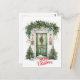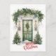 NewParkLane - Vintage style Christmas postcard, featuring a lassical home and green front door decorated with holly and greenery, done in watercolor, and a 'Merry Christmas' wish in cute deep red script typography.