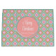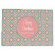Cute and girly "Merry Christmas" gift bag with a pastel pink, teal, and green abstract diamond pattern and personalised with your name. Text is completely customisable so make it your own.