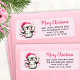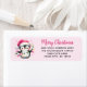 These unique pink Christmas return address labels feature the "Merry Christmas" saying in script font and a cute penguin with Christmas lights. The template makes it easy to type your address.
