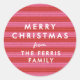 Merry Christmas cute red pink stripe gift Classic Round Sticker