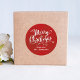 This design features a Merry Christmas custom sticker, with red calligraphy script, bold typography, retro classic, simple minimal, Christmas envelope seal, minimalist, a classic elegant, contemporary holiday gift label
