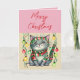Merry Christmas cute smiling cat baubles pink Holiday Card