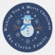 Merry Christmas Cute Snowman custom Family name Classic Round Sticker