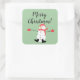 Merry Christmas Cute Snowman on Sage Green Square Sticker