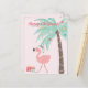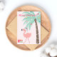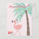 NewParkLane - Tropical Christmas Postcard, featuring a cute pink flamingo's wearing a Santa hat, with a decorated palm tree Christmas and some presents.