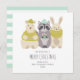 Merry Christmas. Cute winter lama, raccoon, rabbit Holiday Card