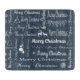 Merry Christmas illustration with text and Christmas symbols decoration on blue background