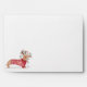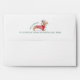 Celebrate the magical and festive holiday season with our custom illustrative holiday envelopes. Our festive holiday design features our hand drawn dachshund dog wearing a festive red cosy knitted sweater. The dachshund dog is wearing antlers with a string of Christmas lights wrapped around the dog and in the dog's month. Personalise with family name and address. The inside of the envelope features our red and white cosy Christmas sweater pattern, beautifully complementing our dog artwork. All illustrations contained in this festive watercolour Christmas dachshund dog envelope are hand-drawn original artwork by Moodthology. You can customise the text size, text colour, font and layout for your own personal design preference.