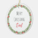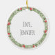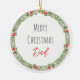 Holiday Wreath in green, red & beige on white background with custom MERRY CHRISTMAS in black, custom DAD in red. Custom LOVE, kids NAME in black on back. Easy to personalise text, text colour. Great for ANY Dad, family member, someone special at the holidays. A timeless keepsake. Festive, Thoughtful, Sweet. Mix and match entire Christmas Ornament Collection by TMCdesigns.