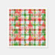 Cute Modern Red green and White twill Gingham check tartan Plaid with Merry Christmas Text and Christmas Decorations of trees, bell, and snowflakes seamless pattern design